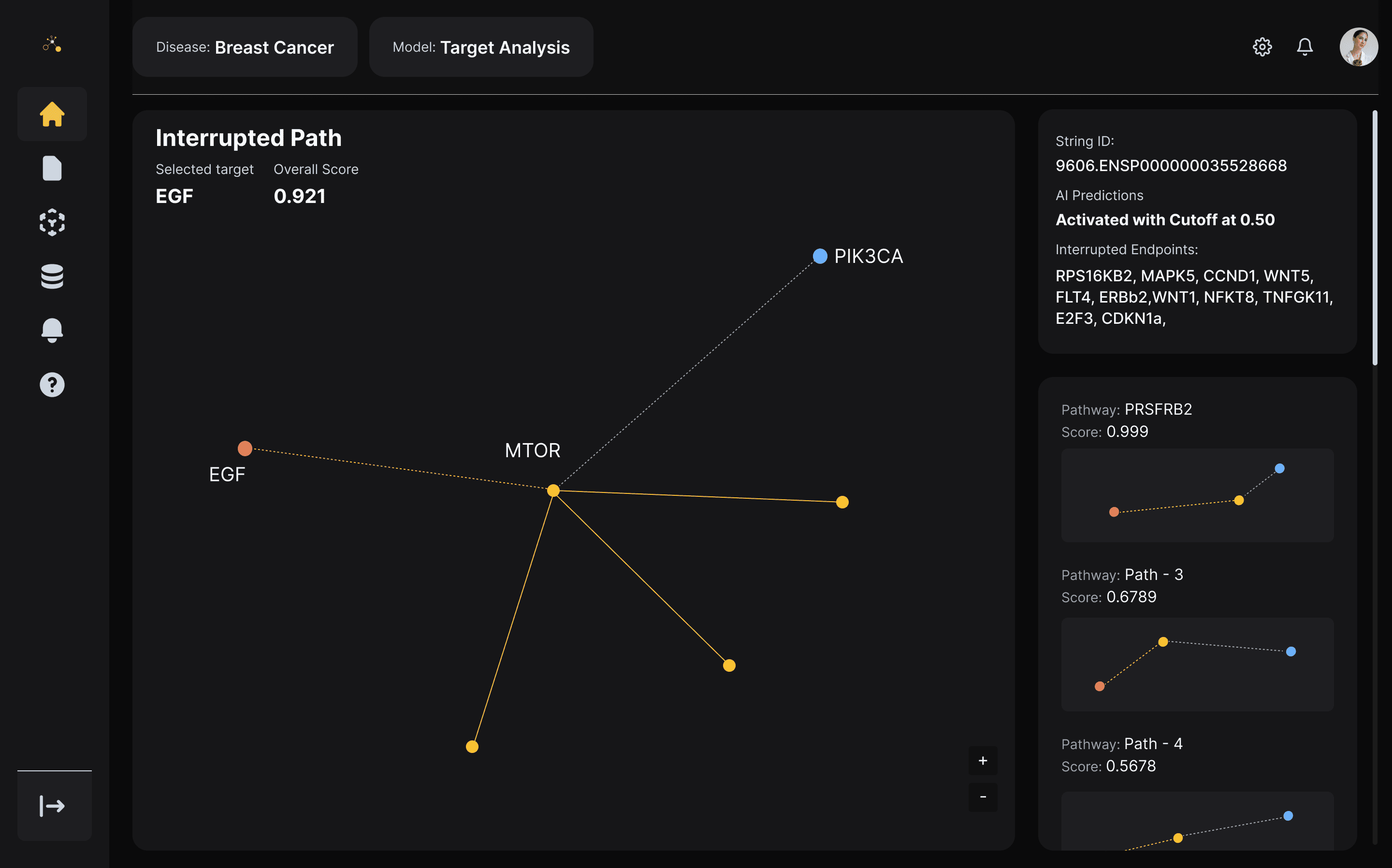 Feature #1: Target validation is the main feature that will help drug researchers determine whether a molecular target has a chance of affecting a biological network and visualize the results.