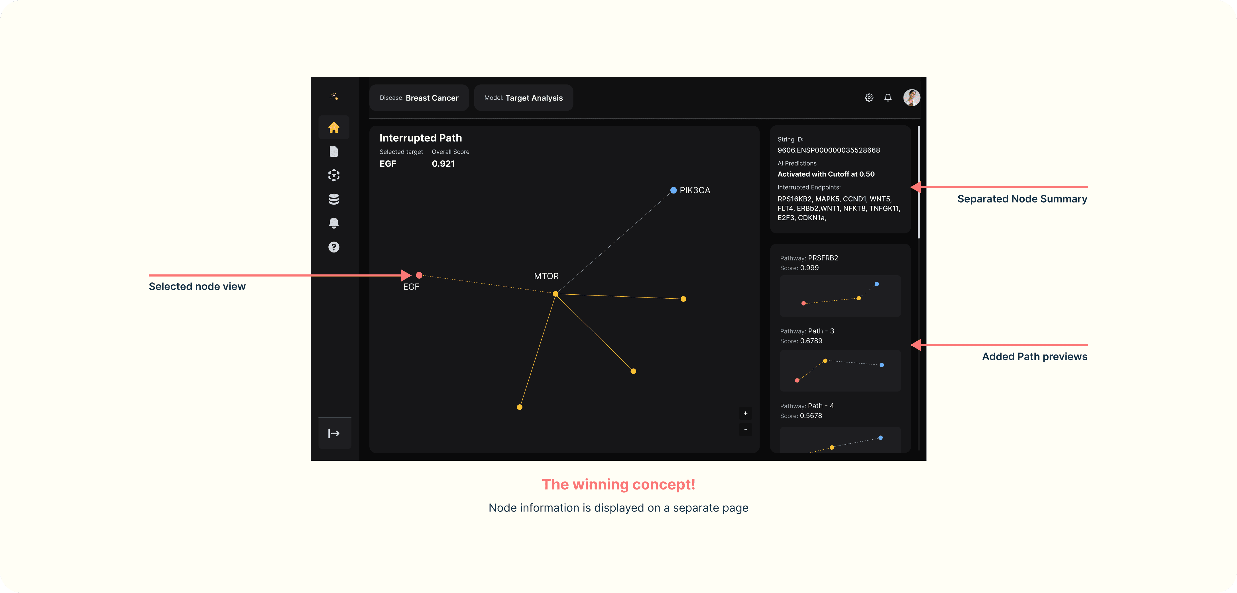 Designing a core feature #1: Target Validation: Validate which disease pathways are affected by therapy and, most importantly, which are not.
