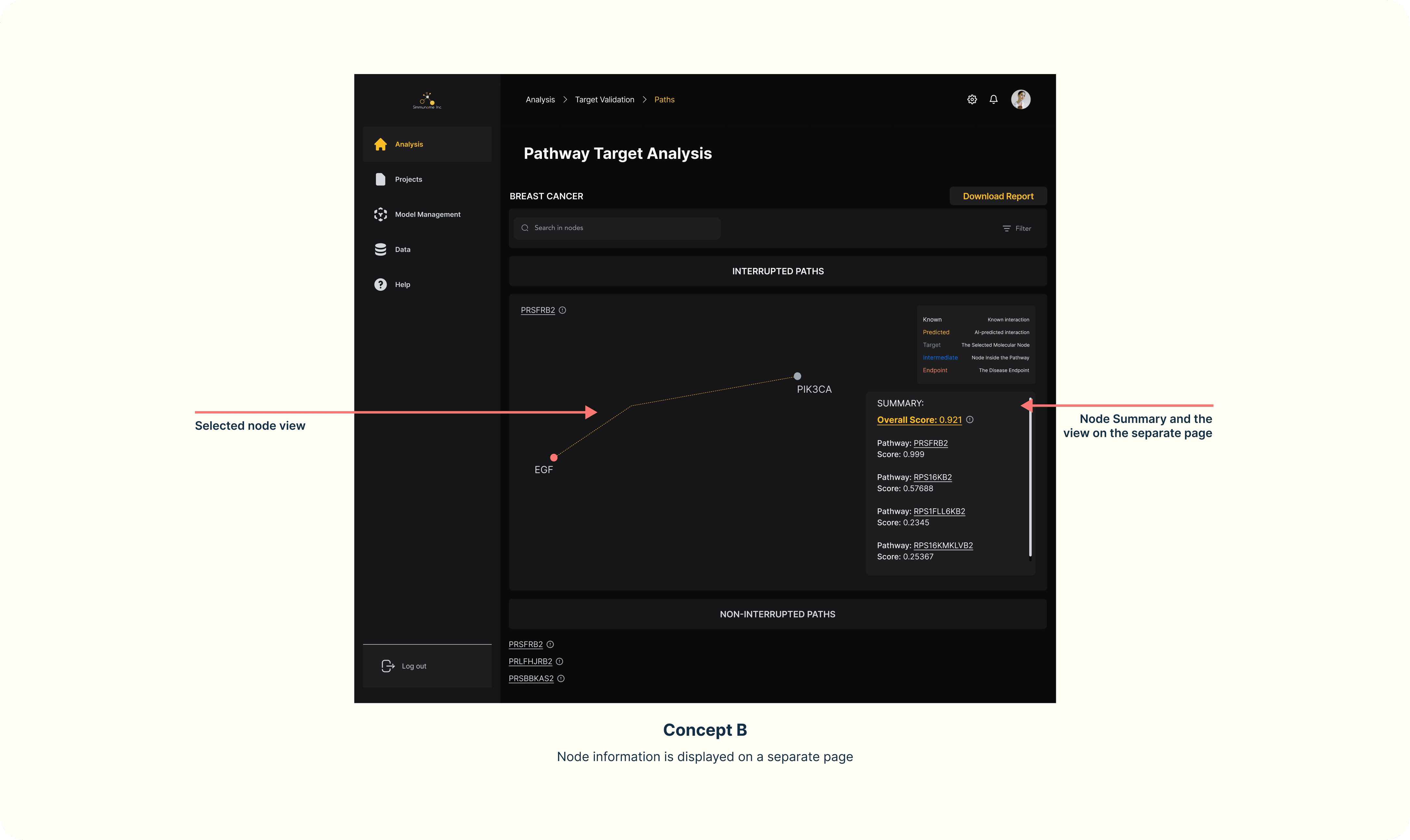 Simmunome lacked a streamlined platform for drug researchers to utilize their models effectively and generate disease model predictions. Currently, customers manually email Simmunome to develop the models. I was hired to design MVP that allows customers to independently create and utilize their models.